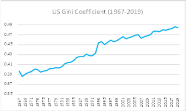 Income inequality is increasing in the US (Figure 1)1.  The response from the Left has been to tax the rich. The response from the Right has been to move to Florida or something, it’s not really clear, but don’t tax the rich. Both parties have ignored one of the main causes for the increasing transfer of wealth from poor to rich and young to old: structurally low interest rates.