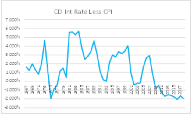 As I understand it, a Millennial is a person who is described by Boomers as valuing work/life balance, caring about experiences more than belongings, and interested in dining out on avocado toast4 rather than eating home cooked meals. In other words, a generation of people that don’t work, and spend too much. Unfortunately, Boomers are treated like people under the law… I’m kidding, some of my best parents are Boomers. But Millennials did enter the work force just as Boomers took down the economy, and subsequently lowered interest rates to spread a 2 year recession over ten years as opposed to taking the pain upfront. The result of lower interest rates was to encourage consumer spending, and keep the recession from becoming the kind of economic event where people jump out of windows on Wall Street and rich people get poor en masse. While low interest rates encouraged consumer spending, they also discouraged savings. For the last 10 years, putting money in the bank has actually made you poorer (Figure 3)5. Without batting an eyelash, Boomers who used low interest rates to save themselves from economic peril now make fun of Millennials for their spending habits. All the while, Generation X’ers6 played the role of older sibling who got out of the house to avoid the abuse and said nothing to help7.